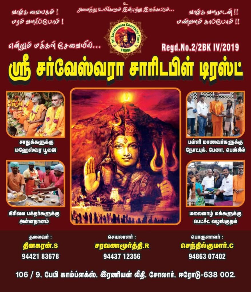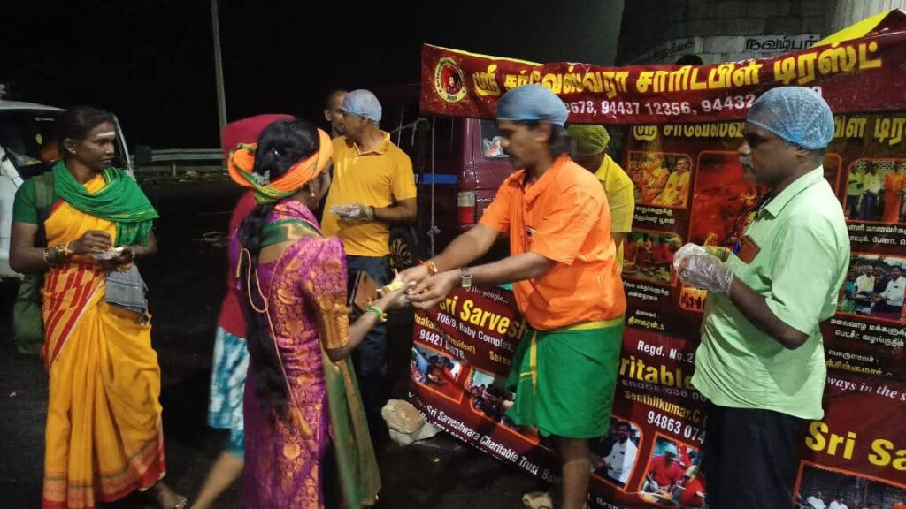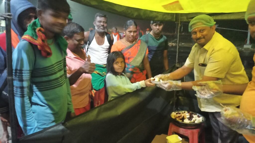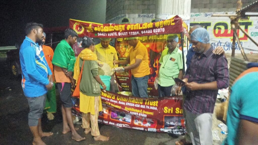 18/01/2025 அன்று தாராபுரம் பகுதியை சேர்ந்த அலங்கியம் என்ற பகுதியில் நமது சர்வேஸ்வரா டிரஸ்ட் ஈரோடு சார்பாக பழனிக்கு பாதயாத்திரை செல்லும் பக்தர்களுக்கு பழ வகைகள் ( mixed fruits ) வழங்கப்பட்டது