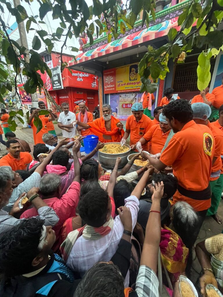 காலை 6 மணிக்கு முதலாவதாக சக்கரைப்பொங்கல் அன்னதானமாக முதலில் ஒரு பெண் குழந்தைக்கு கொடுத்து சுவாமி சதானந்த சரஸ்வதி அவர்கள் தொடங்கி வைத்தார்